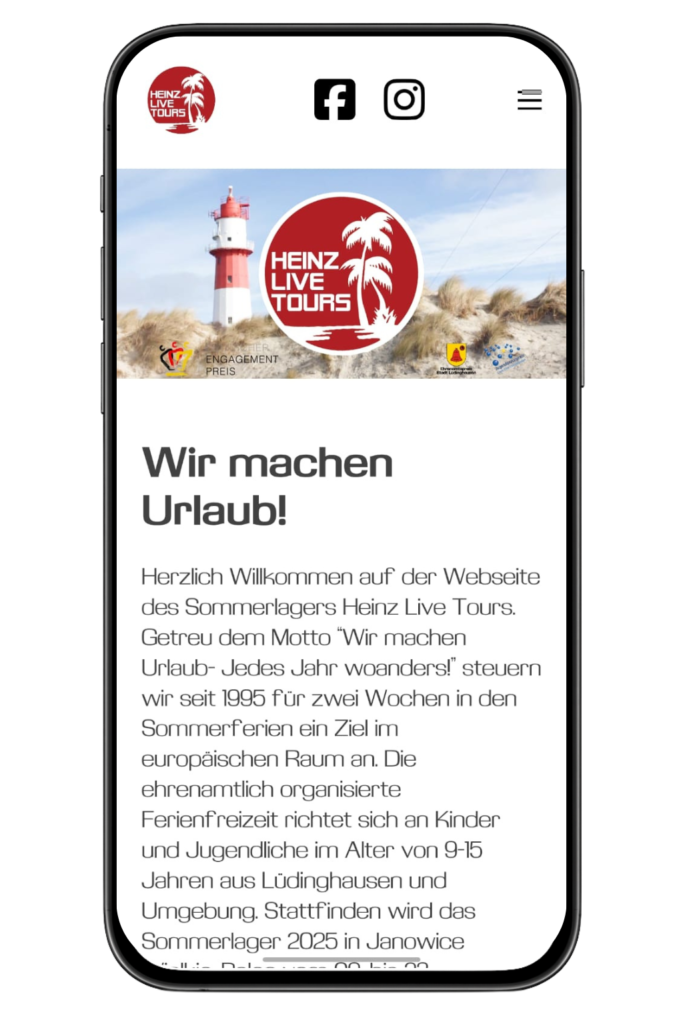 Zu Heinz Live ToursFür das Ferienlager „Heinz Live Tours“ entstand eine lebendige, moderne Website, die Kinder und Eltern gleichermaßen anspricht. Der Fokus lag auf einer klaren Struktur, mobilen Optimierung und einer emotionalen Bildsprache. Infos zu Terminen, Angeboten und Anmeldung sind intuitiv erreichbar.
